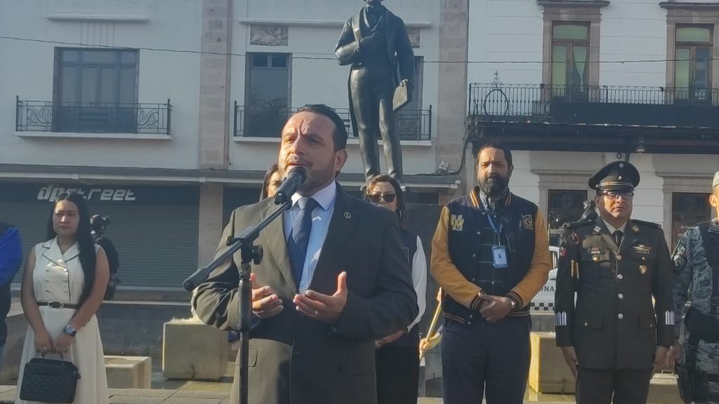 En el presídium estuvieron el Mayor de Infantería José Luis Santos Galicia, el Mayor de la Guardia Nacional Alejandro Estrada López, Ulises Cruz Cardenas por Gobernación, la síndica Melissa Vázquez Pérez y Luis Benjamín Ayala Ramírez, director de Policía de Investigación de la Fiscalía especializada, en representación del gobernador.Ayala Ramírez subrayó el Plan de Paz y Justicia en Michoacán, llamando a atender causas de la delincuencia y acercar a jóvenes información real sobre drogas y alcohol: “Las escuelas son aliadas para la prevención; honramos a Juárez con igualdad y justicia”.