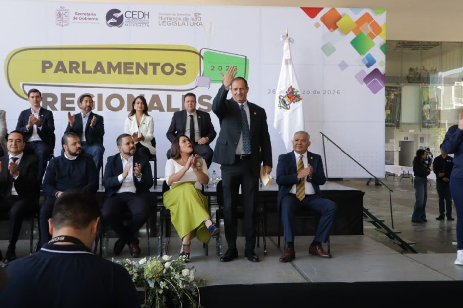Zamora, Michoacán, 26 de marzo del 2026.- El diputado local David Martínez Gowman participó este jueves en el Parlamento Regional organizado por la Comisión Estatal de los Derechos Humanos (CEDH) en la ciudad de Zamora, donde destacó la importancia de construir leyes de la mano con la ciudadanía para garantizar la protección de los derechos fundamentales en el estado.