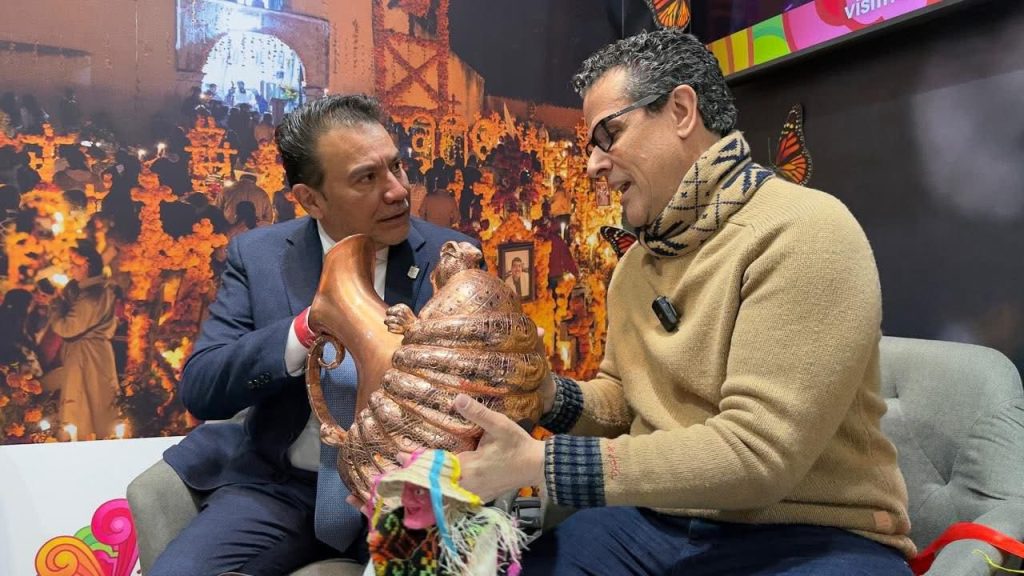 Madrid, España, 22 de enero de 2026.-Michoacán sigue enamorando desde la Feria Internacional de Turismo (Fitur) 2026 en Madrid, España, y ahora tocó el turno a dos figuras públicas ampliamente conocidas en su rubro: el conductor mexicano Marco Antonio Regil, y la diseñadora de moda española, Ágatha Ruiz de la Prada, quienes llegaron al estand de “el alma de México” para reconocer su grandeza y maravillarse con sus atractivos turísticos, naturales y culturales.